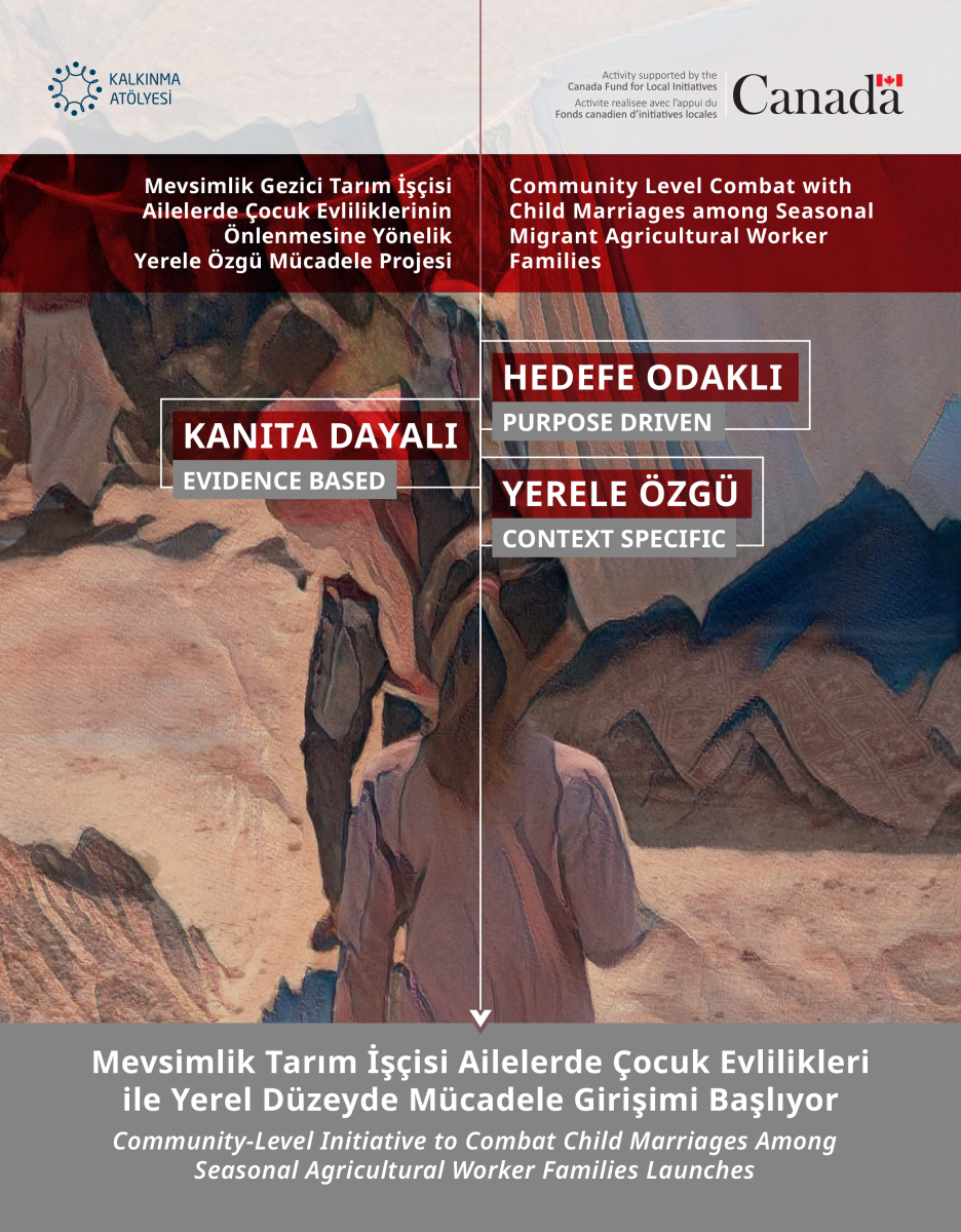 Kalkınma Atölyesi, Kanada Büyükelçiliği Kanada Yerel Girişimler Fonu (CFLI) desteğiyle, mevsimlik tarım işçisi ailelerde çocuk evliliklerinin önlenmesine yönelik yeni bir projeyi hayata geçiriyor. Ağustos 2025 – Şubat 2026 döneminde yürütülecek proje, Adana ve Mersin illerinde uygulanacak.